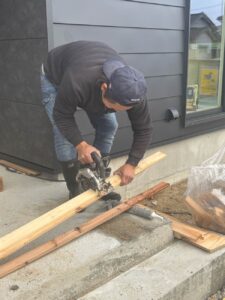 棟梁・星野はちょうど現場の片付け中でした。