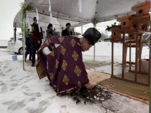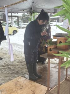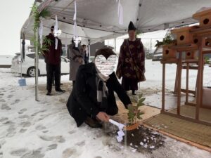 最後に神主さんが鎮め物を埋めていきます。