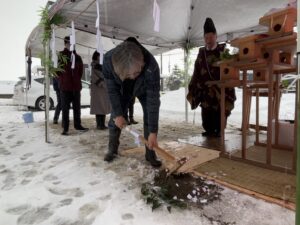 「鍬入れの儀」では、お施主様に、