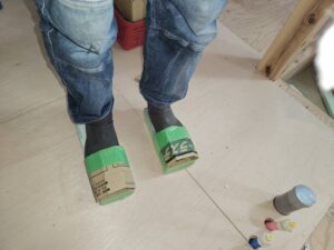断熱材と段ボールで即席でスリッパを作ったそうです!
