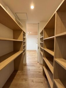 収納へとつながる家族用通路と、