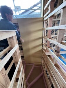 この日は2階で、壁面の下地を貼る