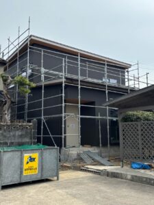 先日、こげ茶色のガルバリウム外壁が貼られました✨