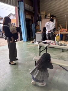 電動工具の大きな音にびっくりのお姉ちゃん😂
